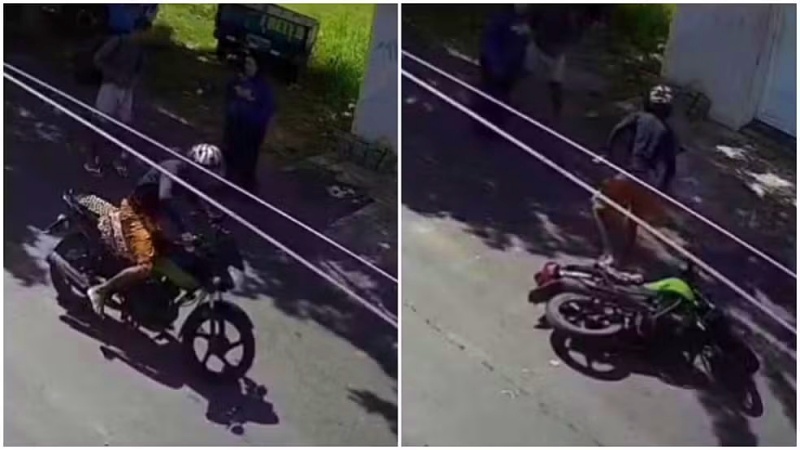 O assaltante tenta várias vezes acionar o veículo, no entanto, não consegue fazê-lo funcionar. Em determinado momento, a moto pende para um lado e cai. Nesse ponto, o assaltante desiste de roubar o veículo, joga o capacete na pista e sai correndo.