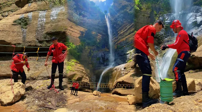 O Agrupamento de Bombeiros Civis de Pires Ferreira instalou contenções na região da Bica da Cachoeira do Donato para isolar áreas consideradas de risco e reforçar a segurança de visitantes.