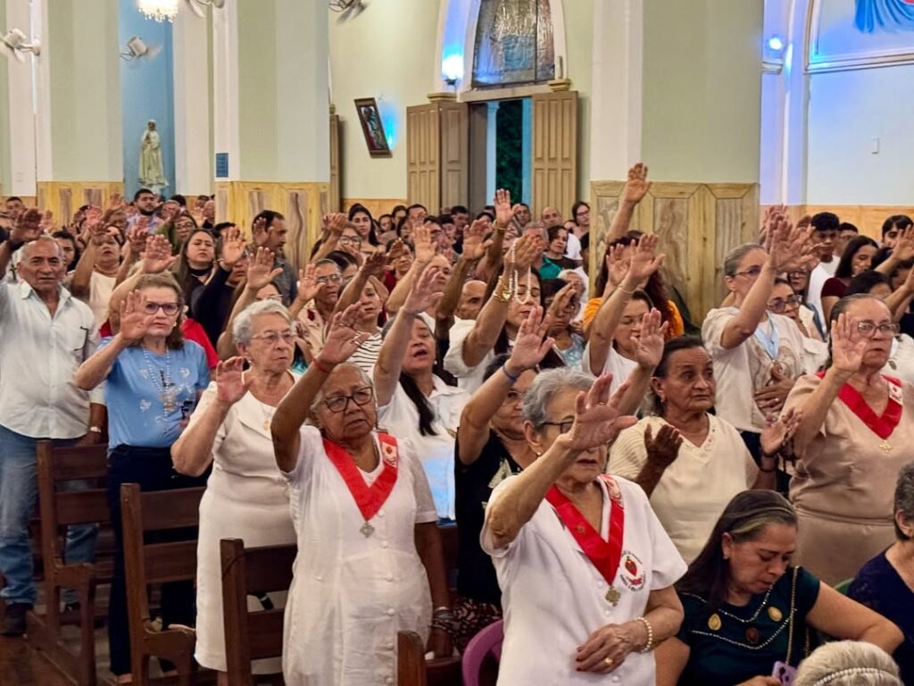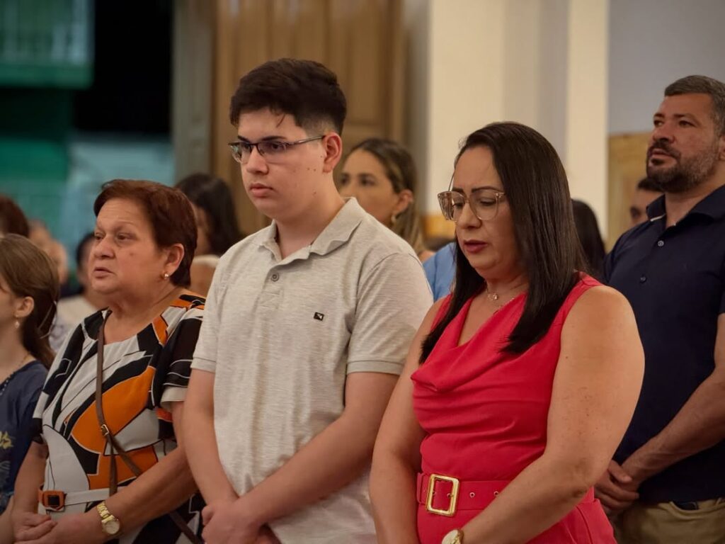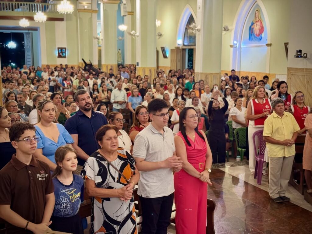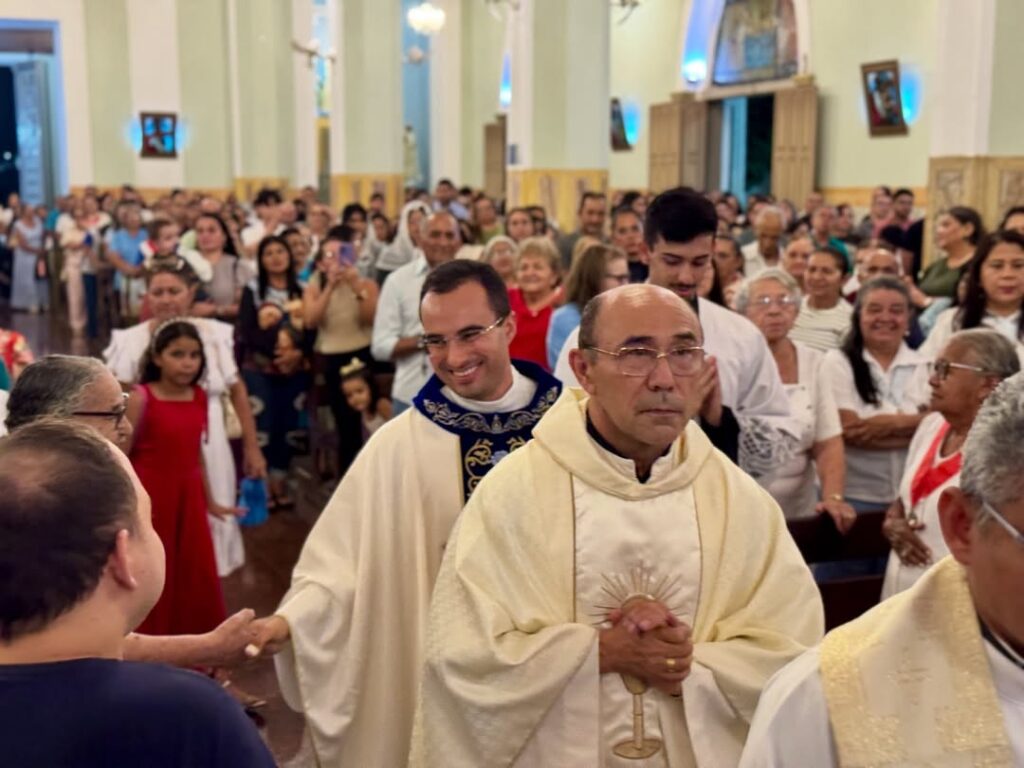 A Santa Missa foi concelebrada pelo pároco, padre Edmilson Eugênio, pelo padre Valdir Braga e pelo padre Herlandino Sampaio, reunindo fiéis para acompanhar a celebração.