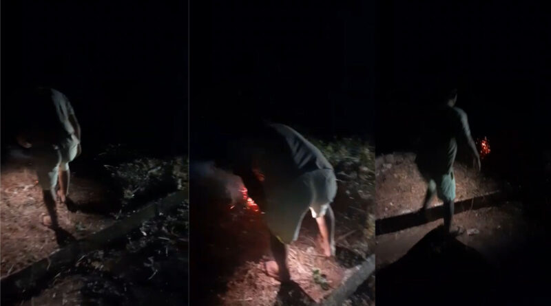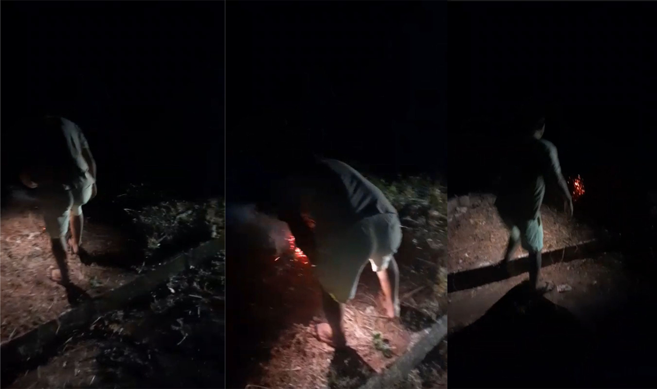 O flagrante do ato criminoso teria sido feito durante a noite do último domingo (28) de setembro de 2025. O autor do vídeo mostra os focos de incêndio na vegetação e obriga um homem a começar a apagar o fogo para que se espalhe pelo terreno.