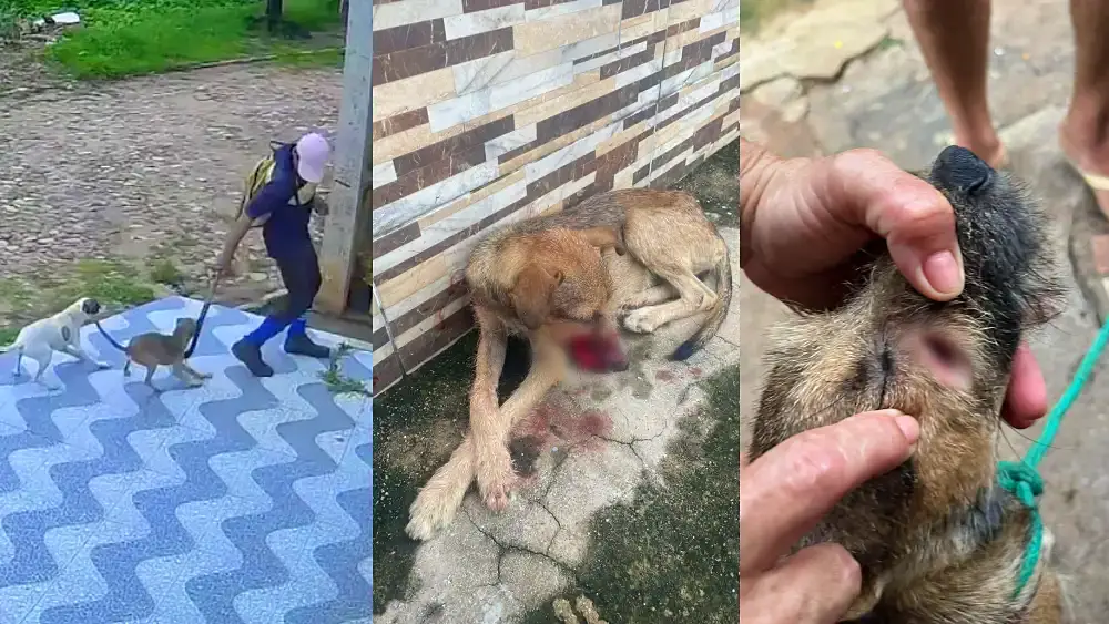 Um caso de maus-tratos contra animal foi registrado na semana passada no município de Ipu. Um homem foi flagrado por imagens de câmeras de segurança atingindo uma cachorra com uma foice no bairro Pereiros.