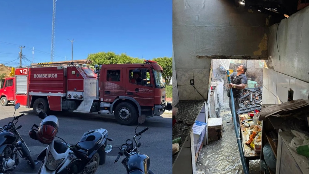 Incêndio destrói cozinha da lanchonete no centro de Santa Quitéria e deixa proprietário com queimaduras de 2º grau