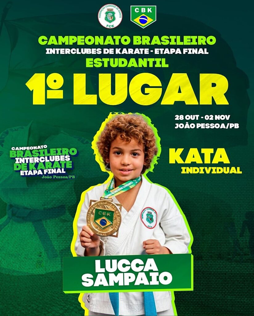 O esporte de Ipu registra mais um feito. O jovem atleta Lucca Sampaio conquistou o título de bicampeão brasileiro de Karatê Estudantil, categoria Kata Individual, em competição realizada em João Pessoa, na Paraíba neste dia 29 de outubro (quarta-feira).