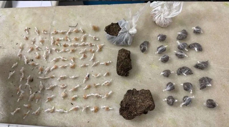 Ainda conforme o relato policial, foi realizada busca pessoal na suspeita, sendo encontrada com ela uma quantidade de crack e maconha. Em seguida, os militares fizeram uma varredura na área de mata ao redor da residência em busca de mais entorpecentes. Nessa varredura, foram localizadas mais porções de cocaína, maconha, além de uma balança de precisão e uma pequena quantia em dinheiro, dentro de uma sacola no quintal do imóvel.