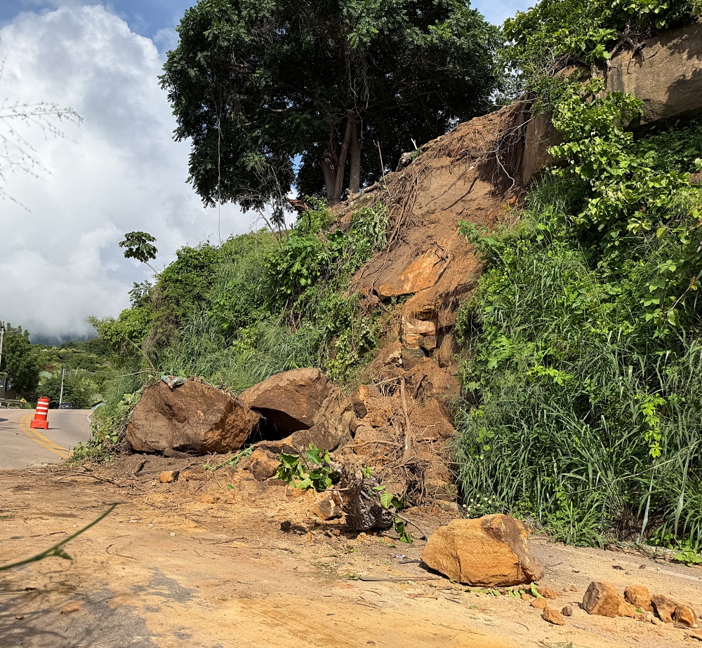 Pedras de grande porte deslizam e interditam parcialmente a CE-187, na Serra da Ibiapaba, em Ipu