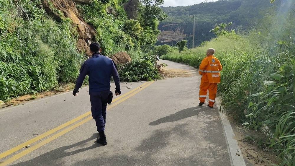 De acordo com as informações repassadas no local, agentes da Superintendência de Obras Públicas (SOP) do Estado do Ceará também estiveram na área e informaram que será necessária a interdição total da via para a retirada das pedras com o uso de maquinário pesado.