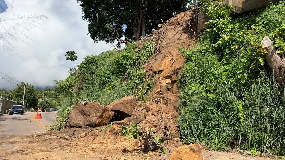 Pedras de grande porte deslizam e interditam parcialmente a CE-187, na Serra da Ibiapaba, em Ipu