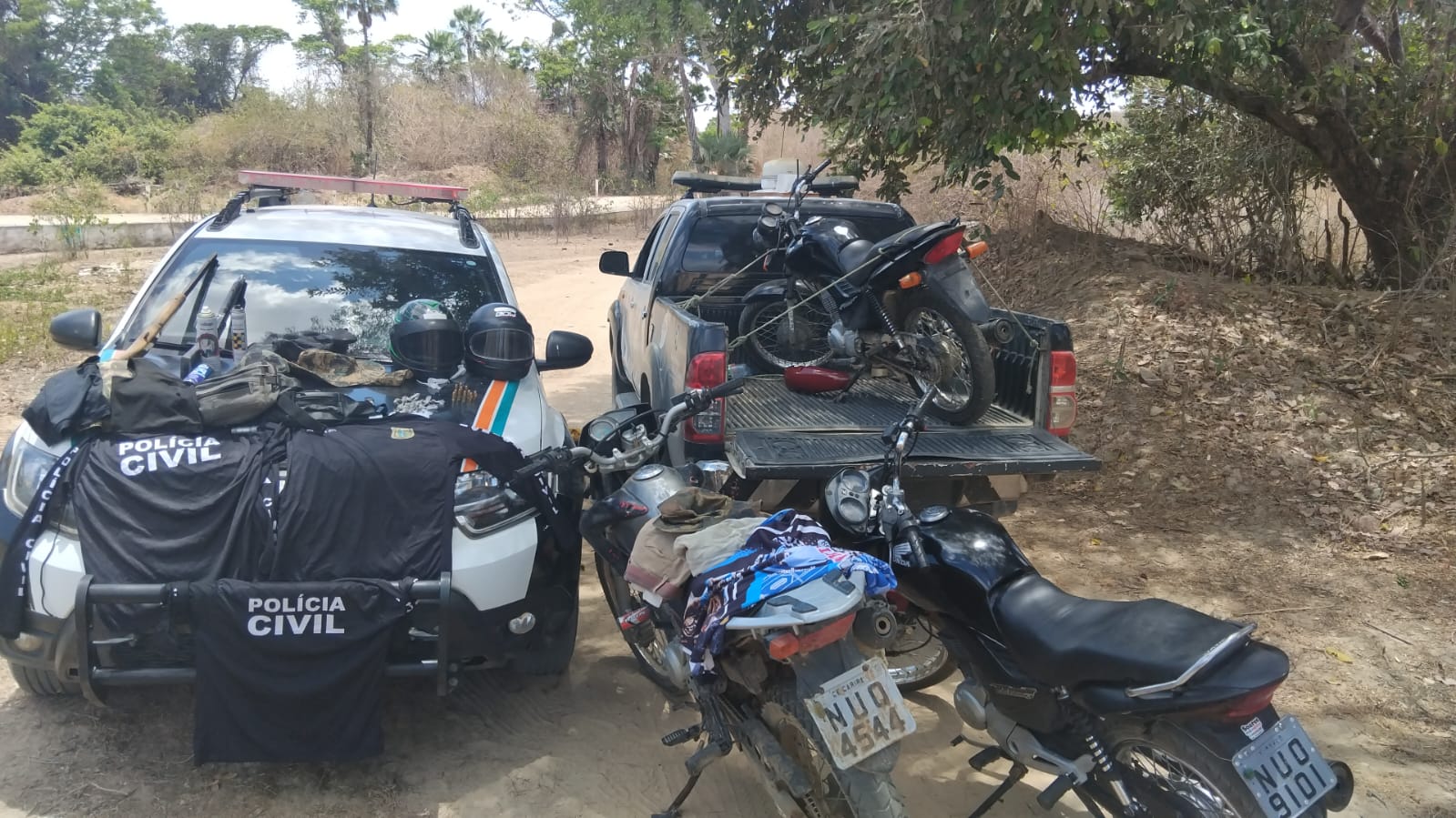 Durante as ações, os PMs apreenderam três motocicletas — duas delas com indícios de adulteração —, além de armas artesanais, munições, drogas e vestimentas táticas que simulavam fardamentos policiais.