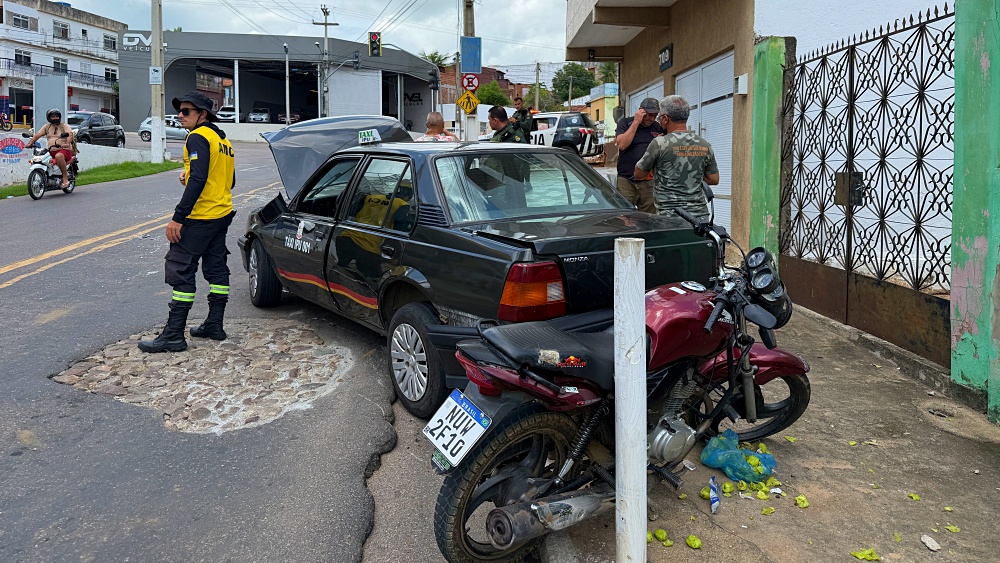 Suporte de muque de caminhão se solta e atinge táxi e moto em Ipu
