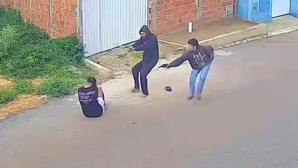 As imagens mostram que o jovem corre pela rua da própria casa, mas acaba sendo atingido nas costas pelo primeiro disparo e cai no chão. Mesmo com a vítima caída, os criminosos ainda apontam as armas para ele. Em um primeiro momento, a arma de um dos criminosos falha, o que impede novos disparos. Esse suspeito desiste da ação e foge do local.